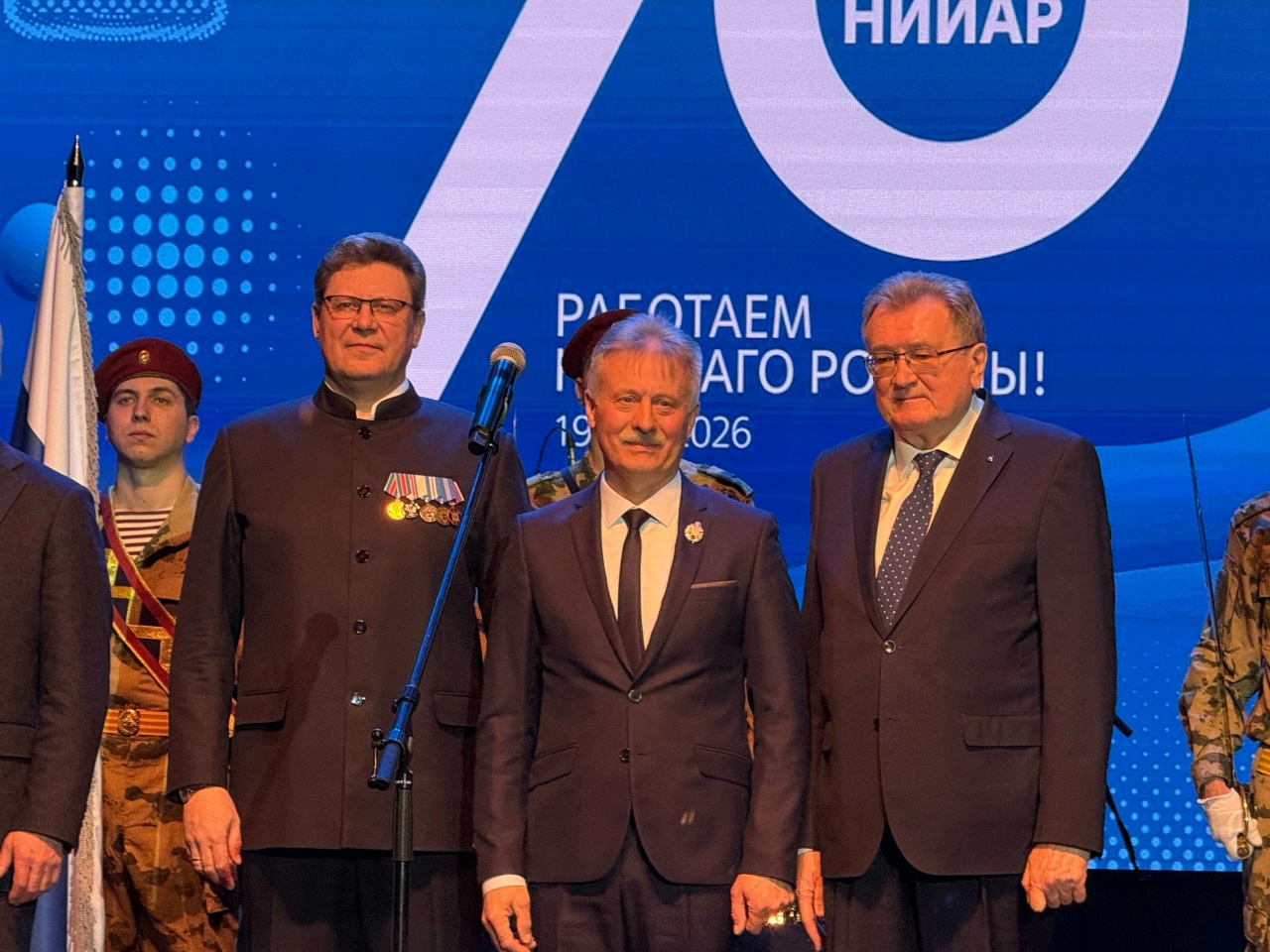 Тон торжественному собранию задала церемония вручения трудовому коллективу высокой государственной награды – ордена Александра Невского. Ее провели губернатор Ульяновской области Алексей Русских и заместитель генерального директора по науке и стратегии госкорпорации «Росатом» Юрий Оленин.